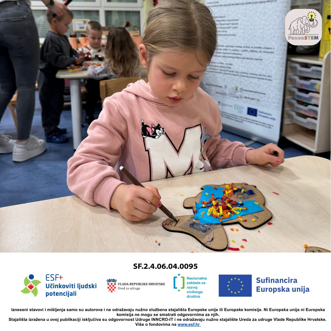 U sklopu radionice kao izvanvrtićke aktivnosti koja je održana u sklopu projekta “PanonSTEM” na kojemu smo jedni od partnera, na temu onečišćenja mora djeca su kroz eksperiment plutanjem i tonjenjem istraživala kako veličina, masa i materijal utječu na ponašanje predmeta u vodi te razvijala sposobnost uspoređivanja i zaključivanja.