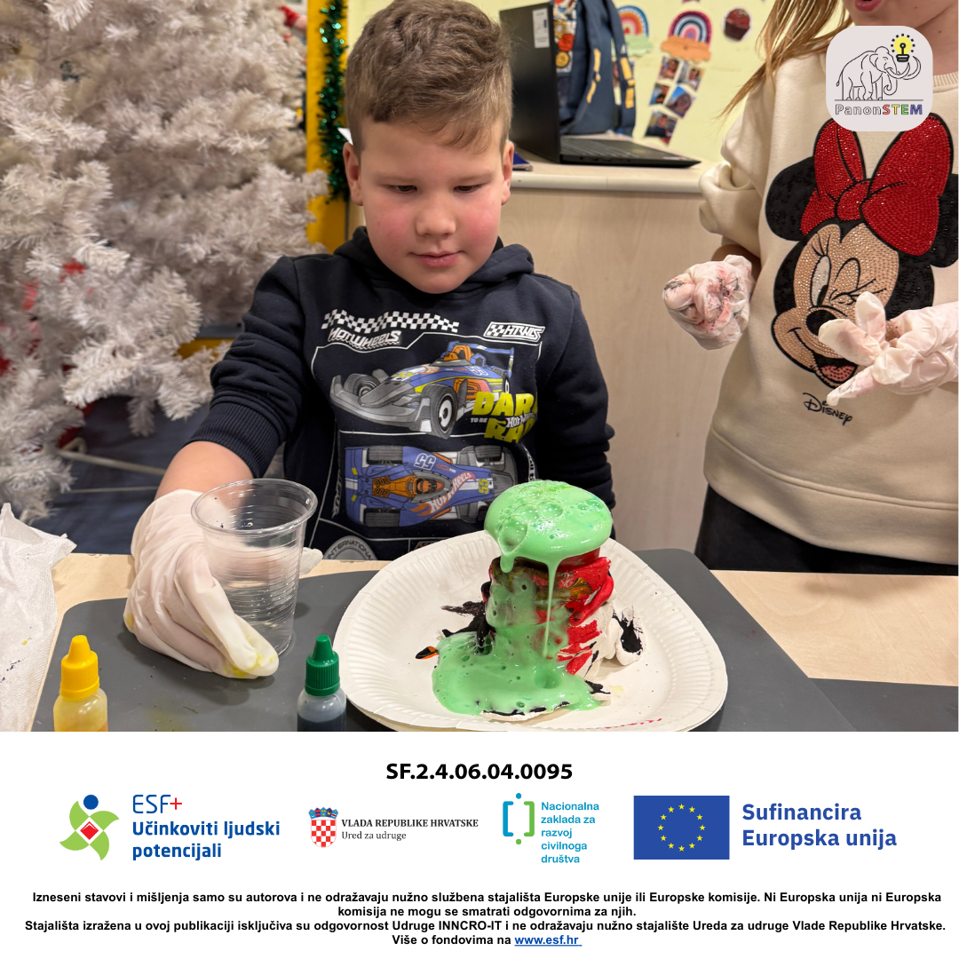 Četvrti dan STEM kampa započeo je kreativno – djeca su bojila vulkane koje su prethodno izradila, miješala boje i učila koje se boje dobivaju njihovim kombiniranjem .